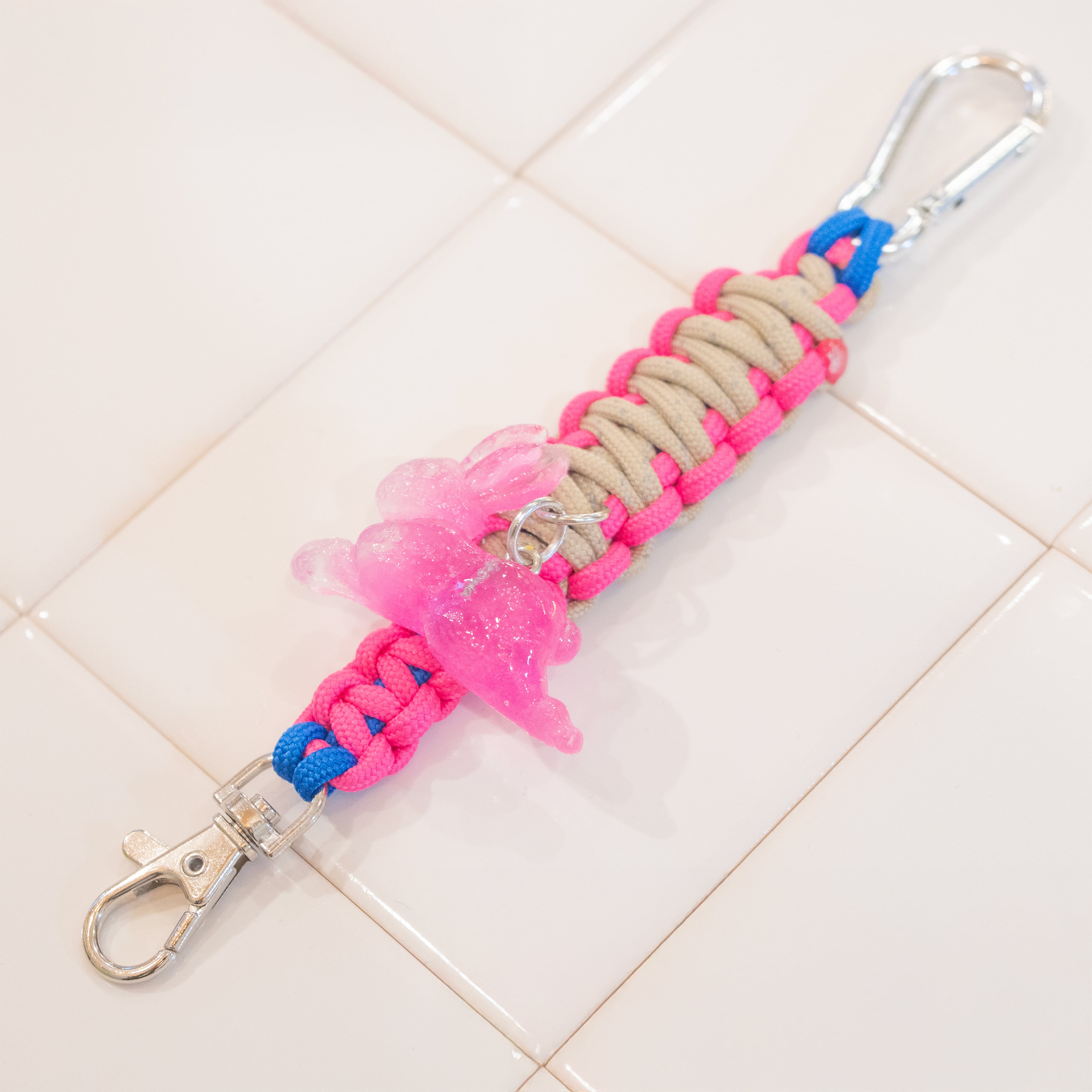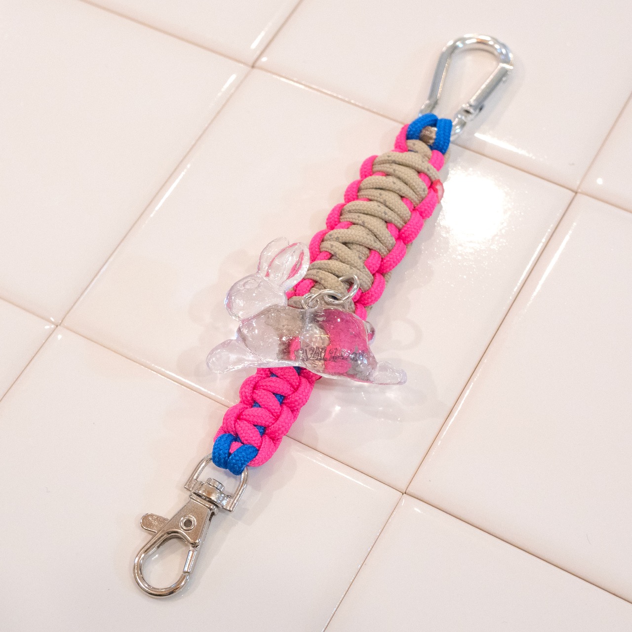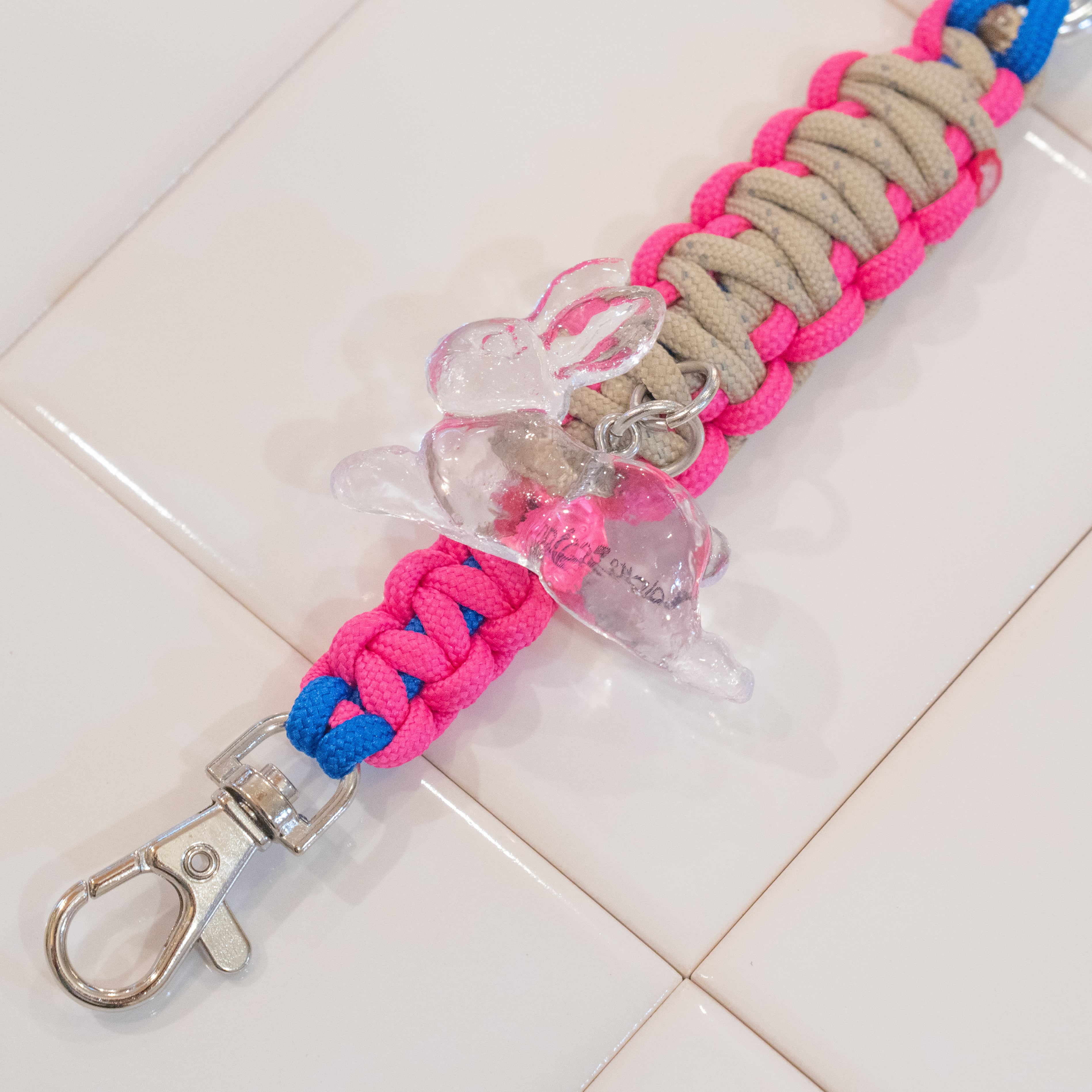 ハンドメイドのパラコードアクセサリーうさぎのチャーム付き。