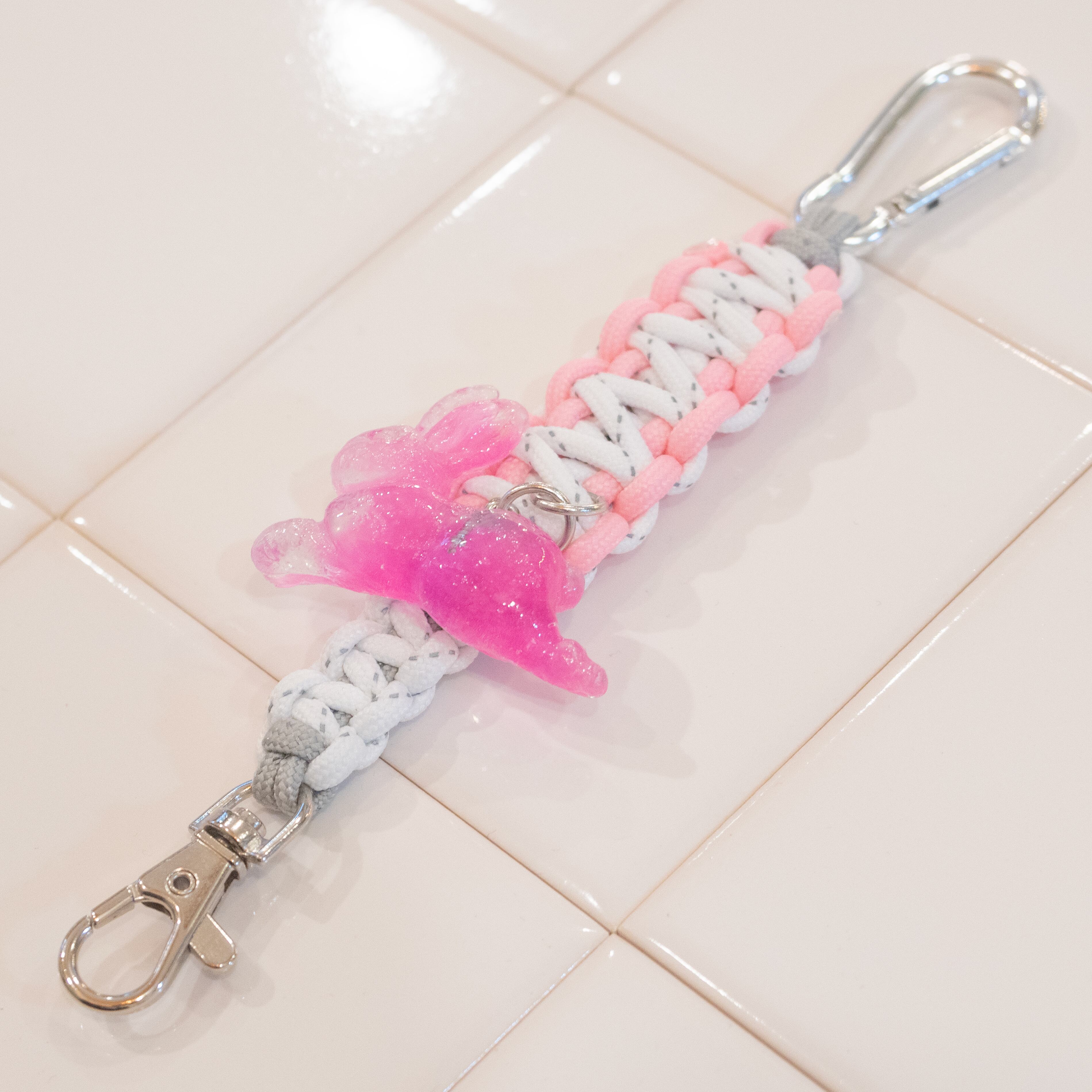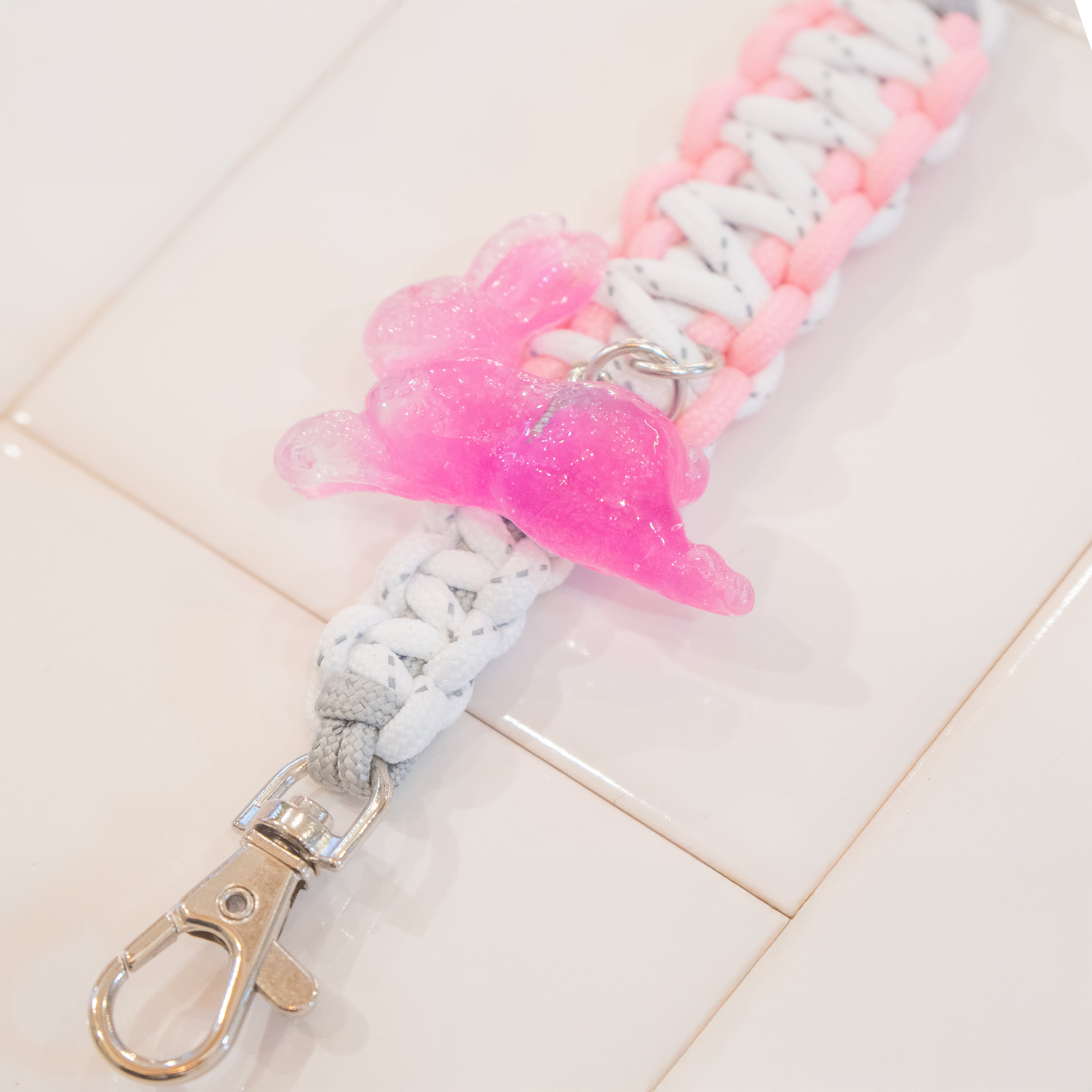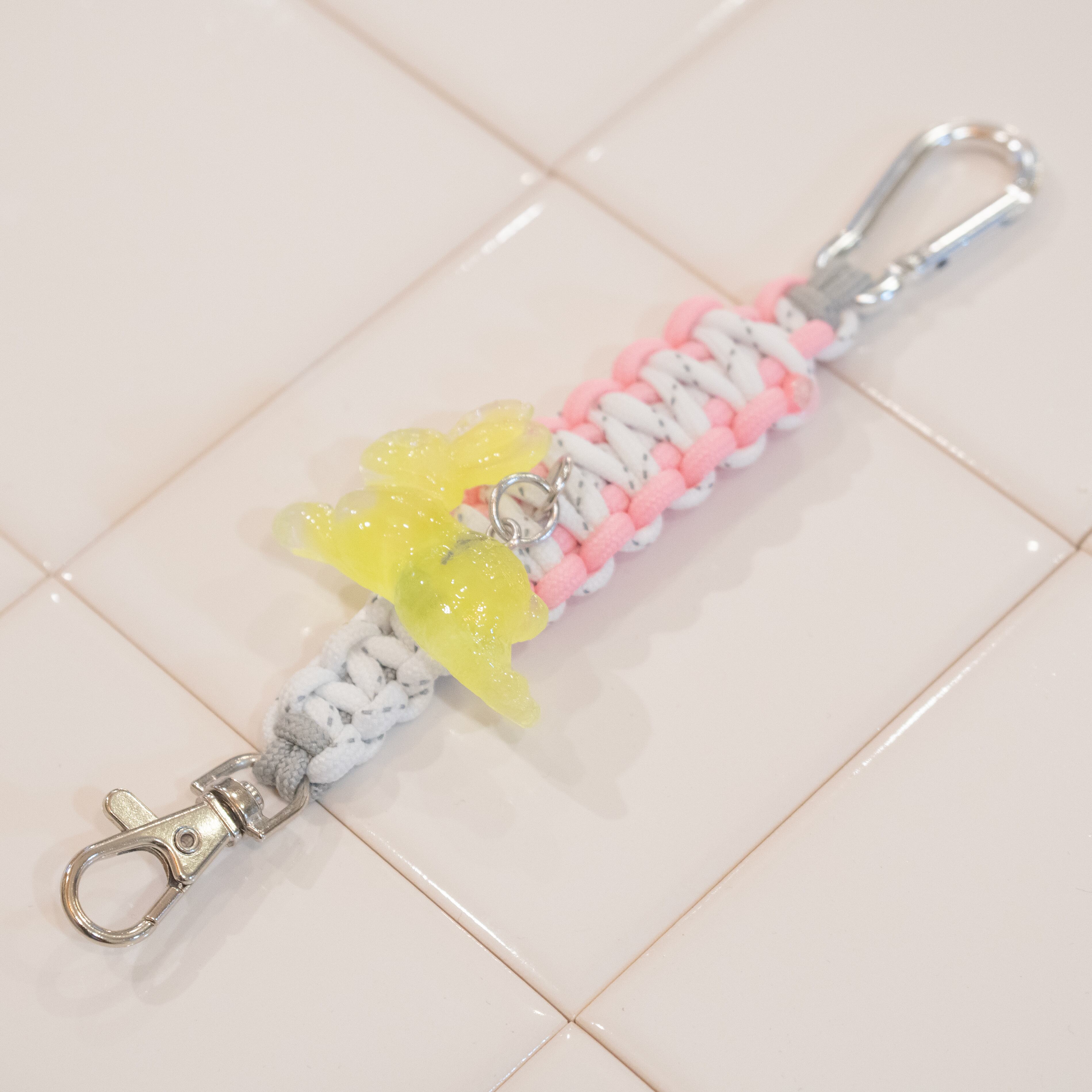 ハンドメイドのパラコードアクセサリーうさぎのチャーム付き。