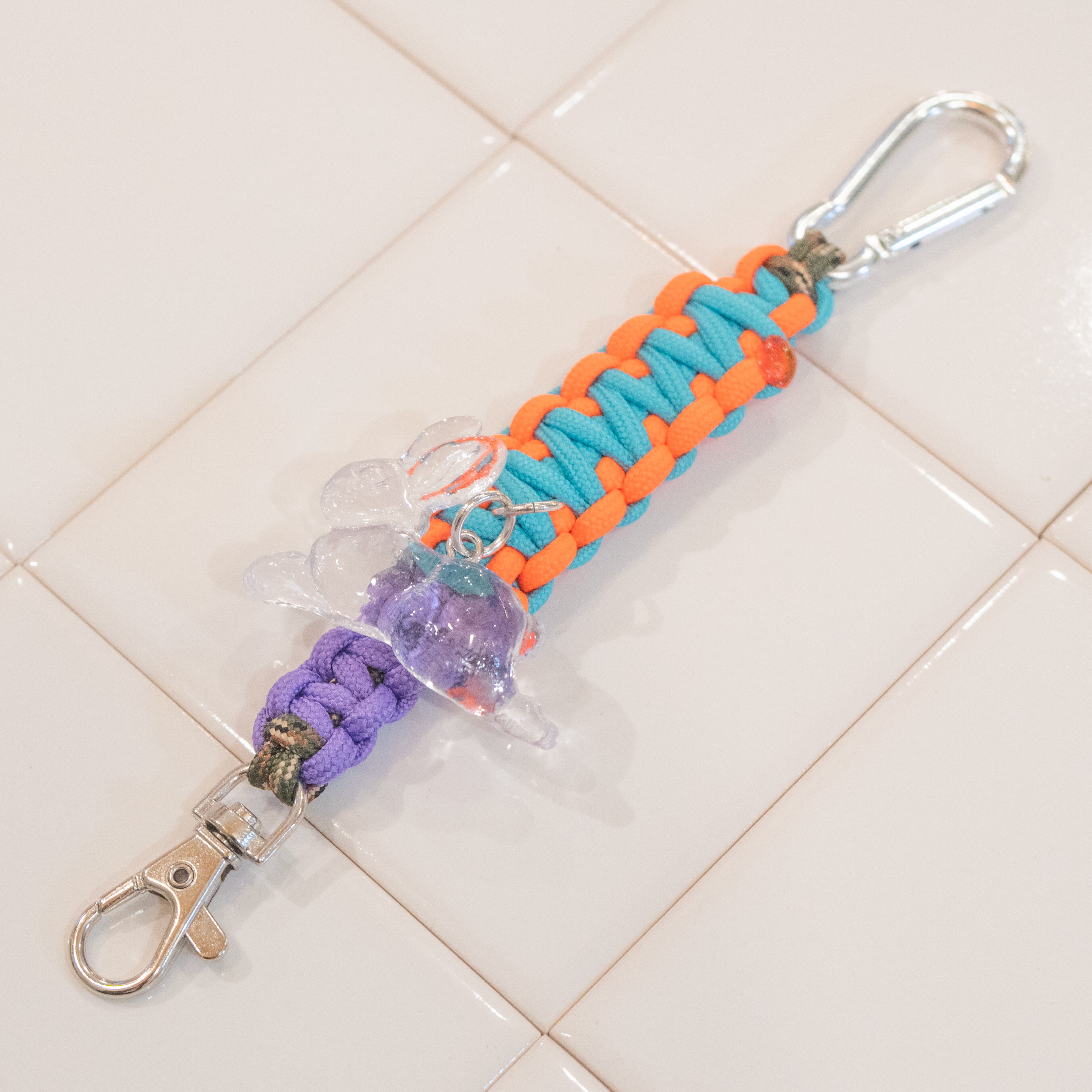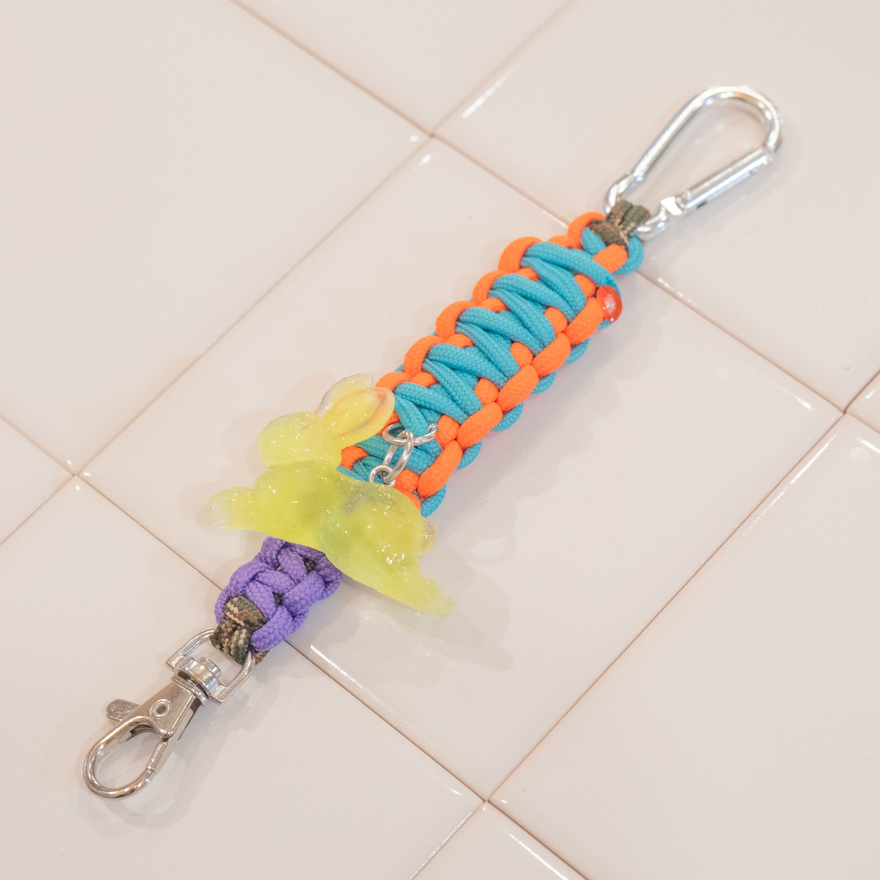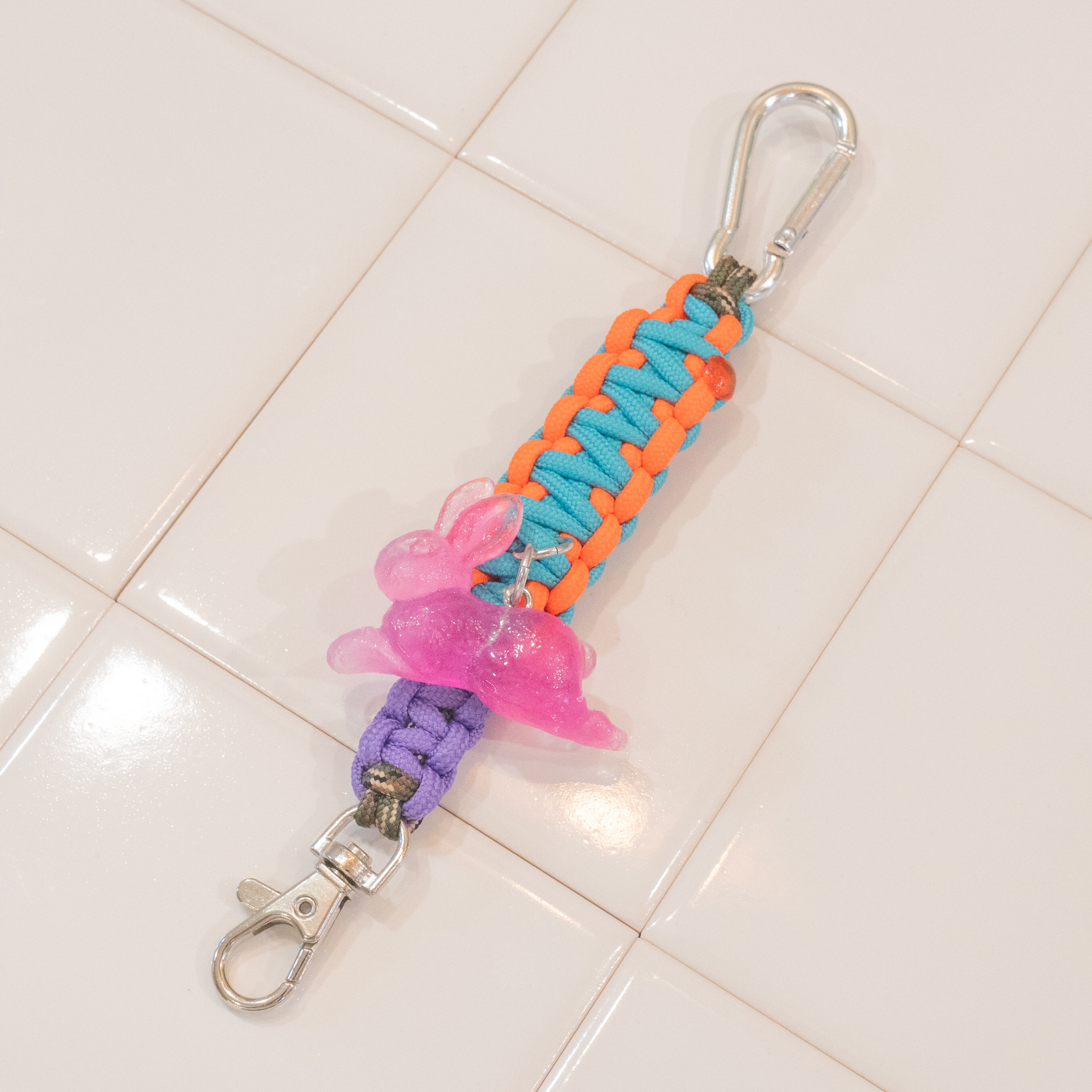 ハンドメイドのパラコードアクセサリーうさぎのチャーム付き。