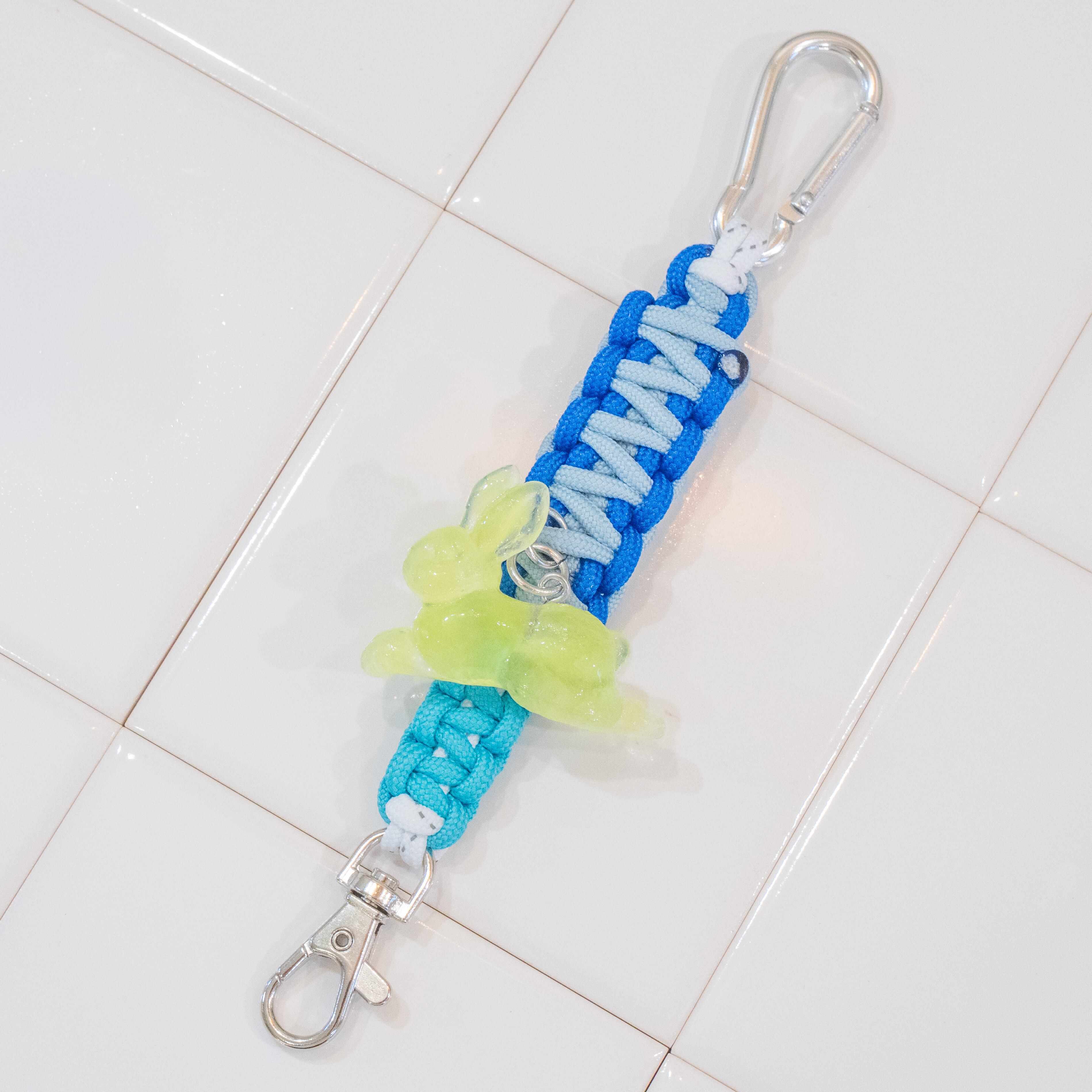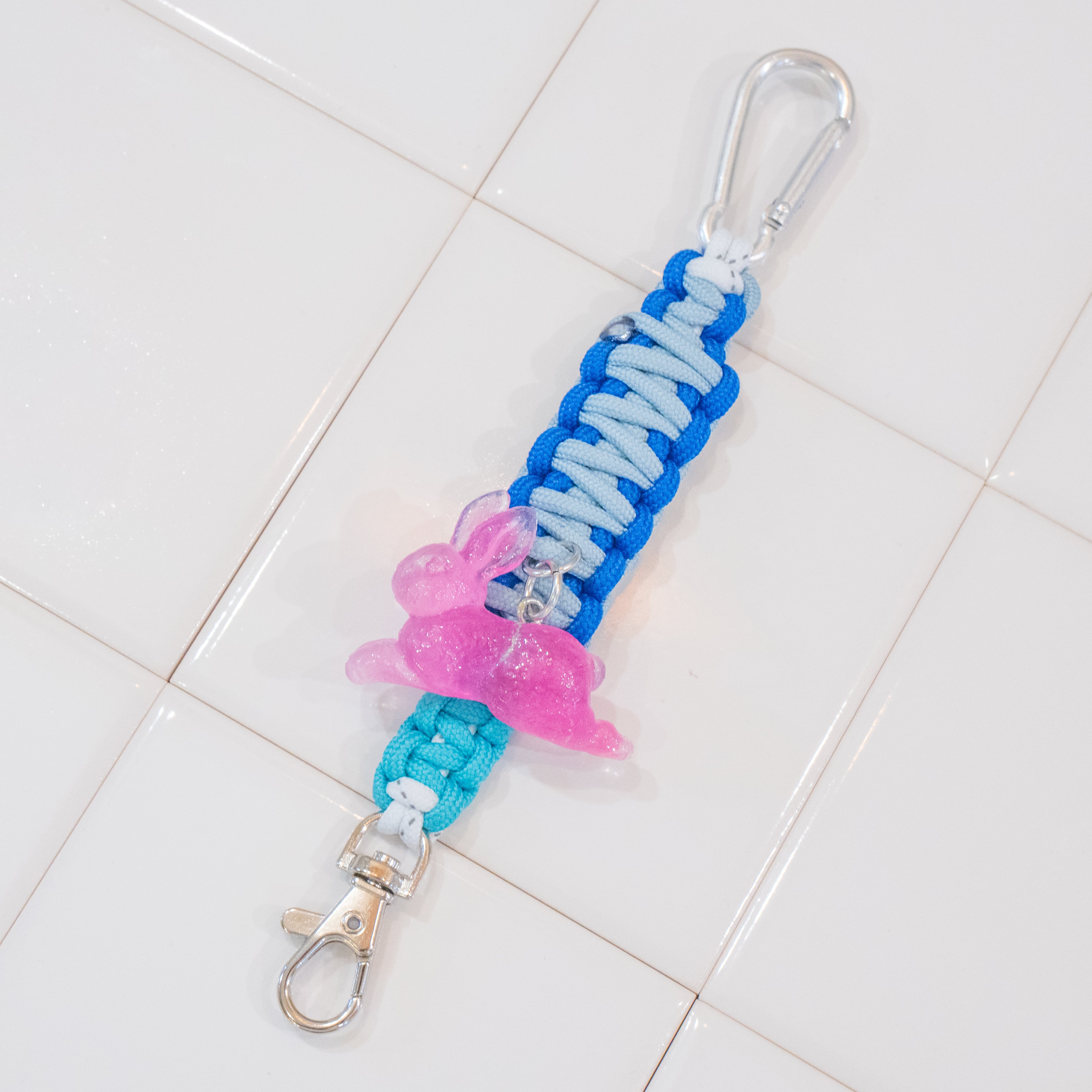 ハンドメイドのパラコードアクセサリーうさぎのチャーム付き。