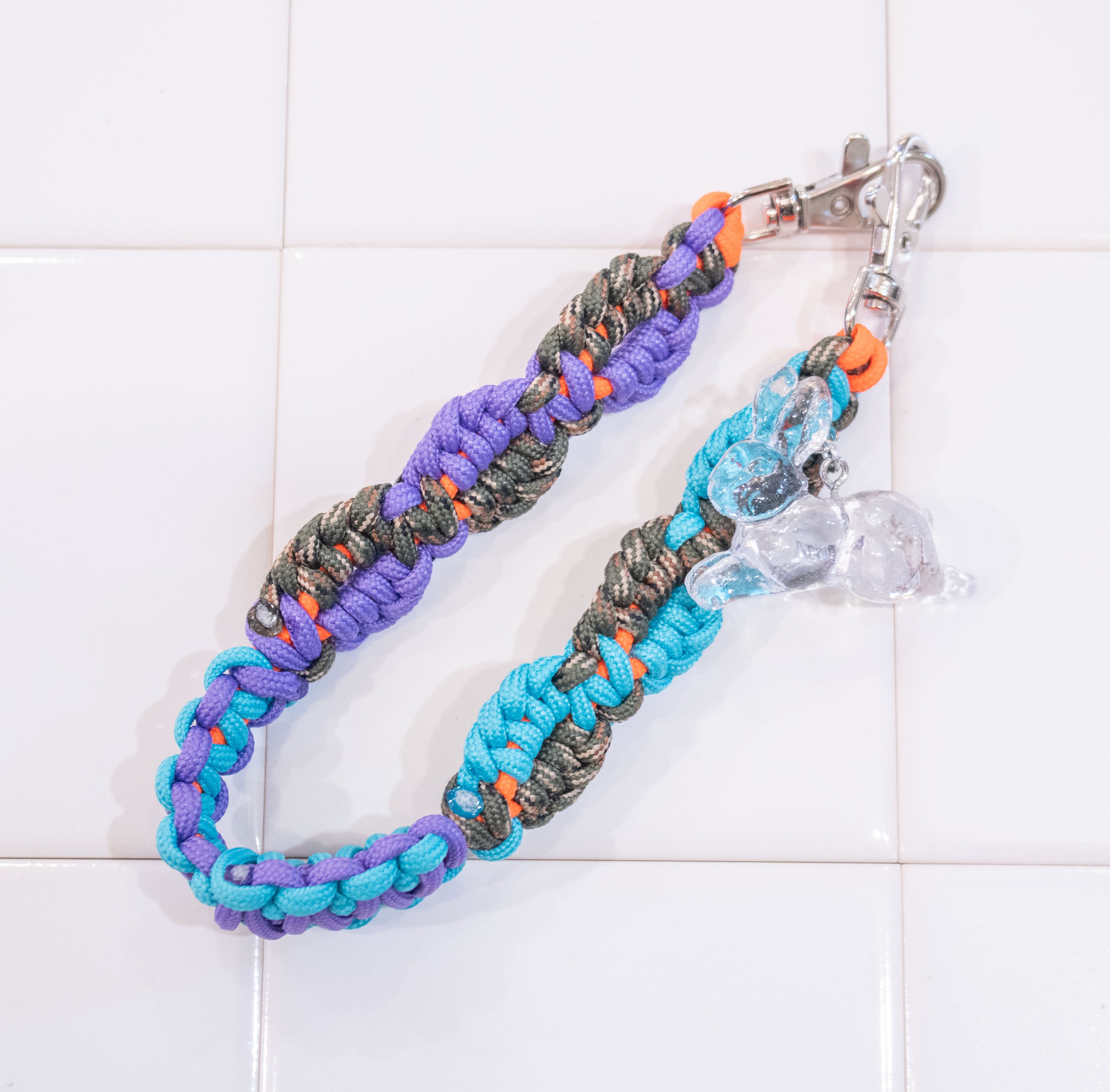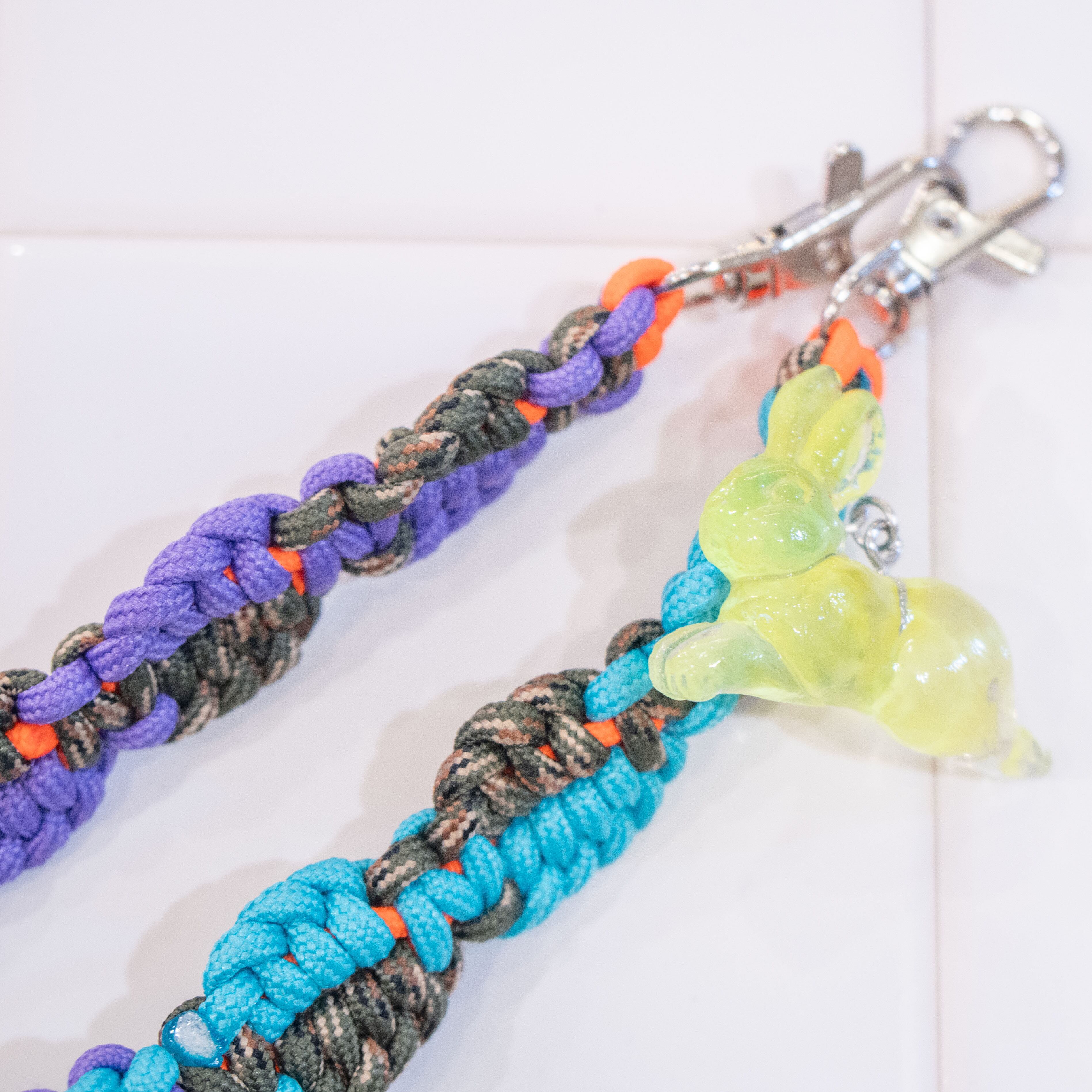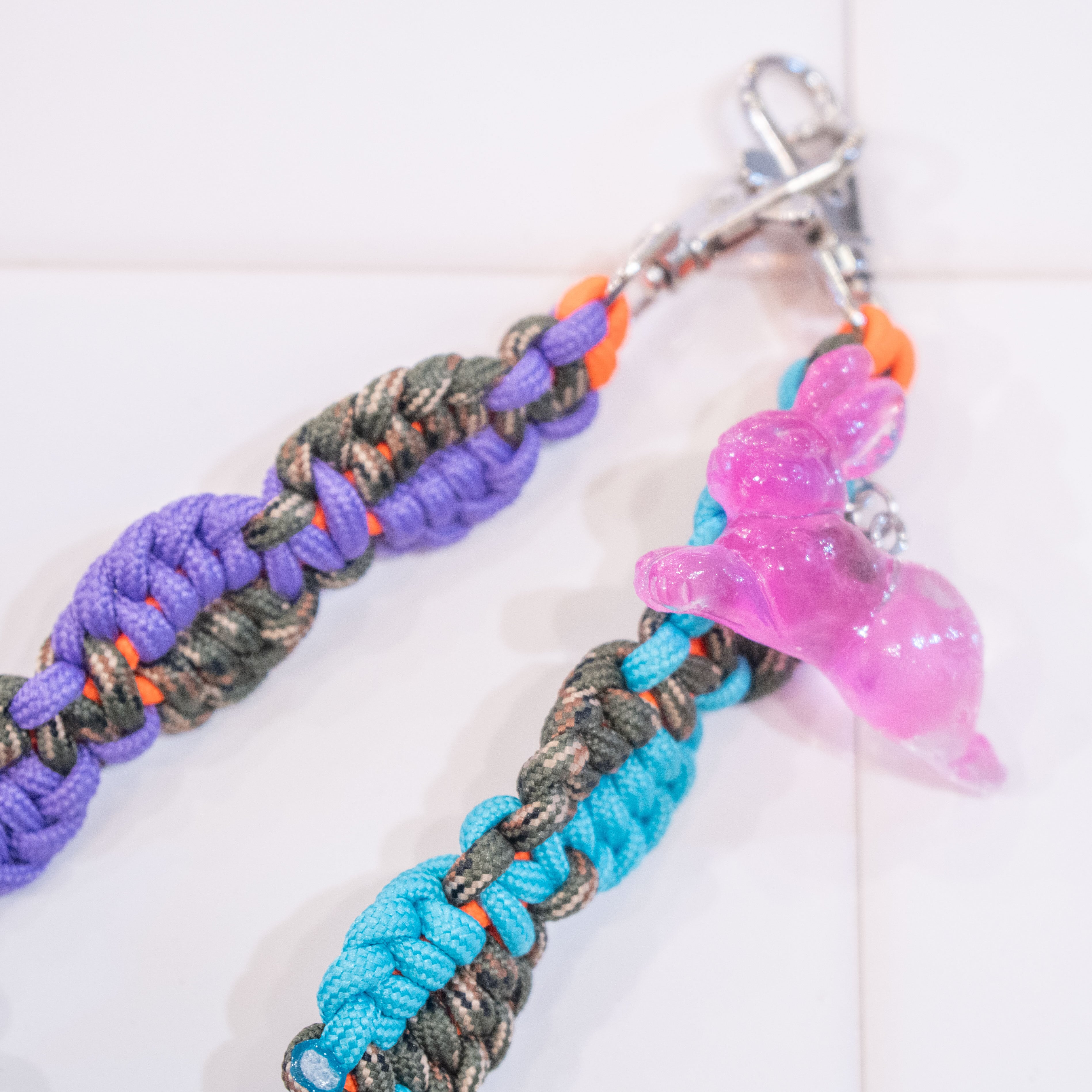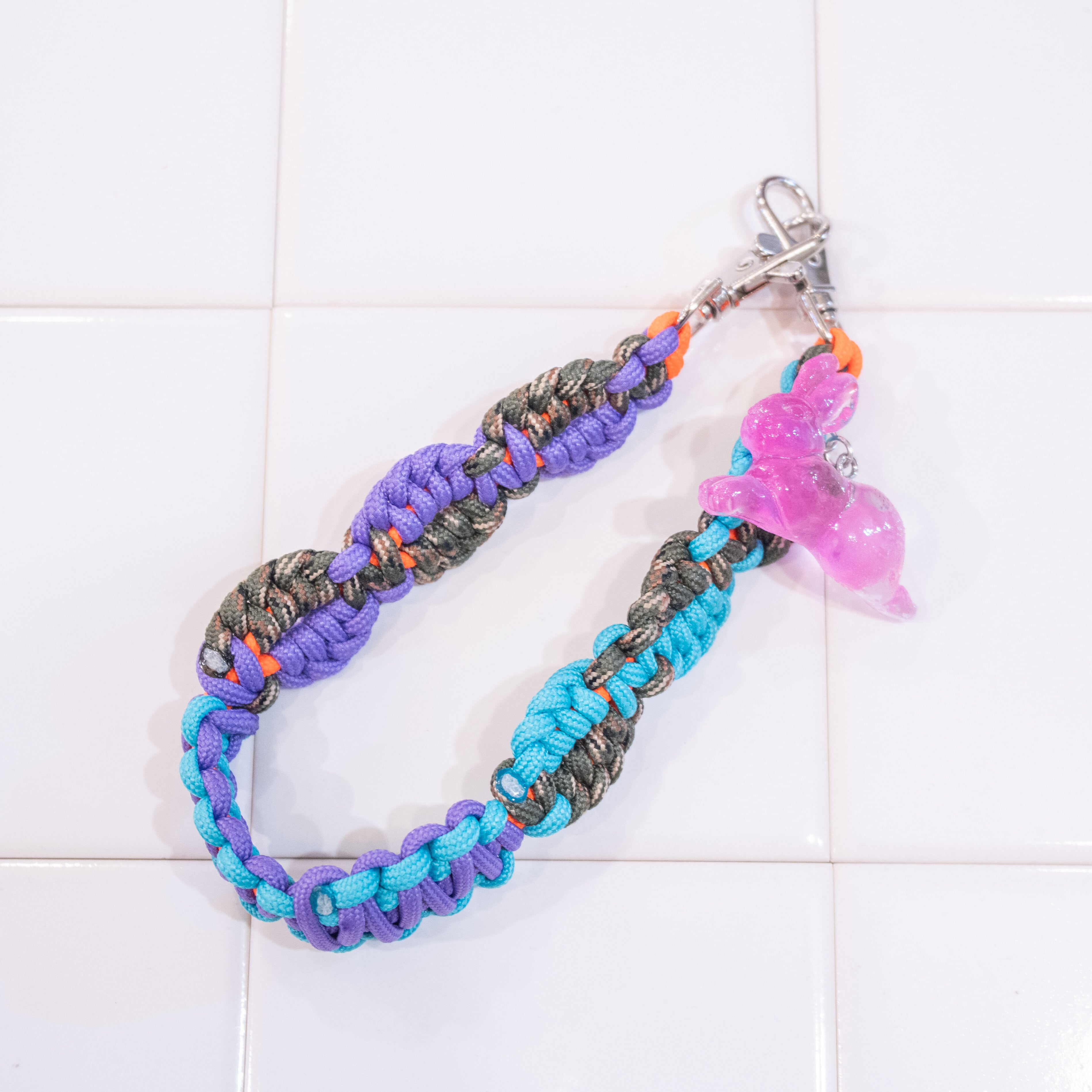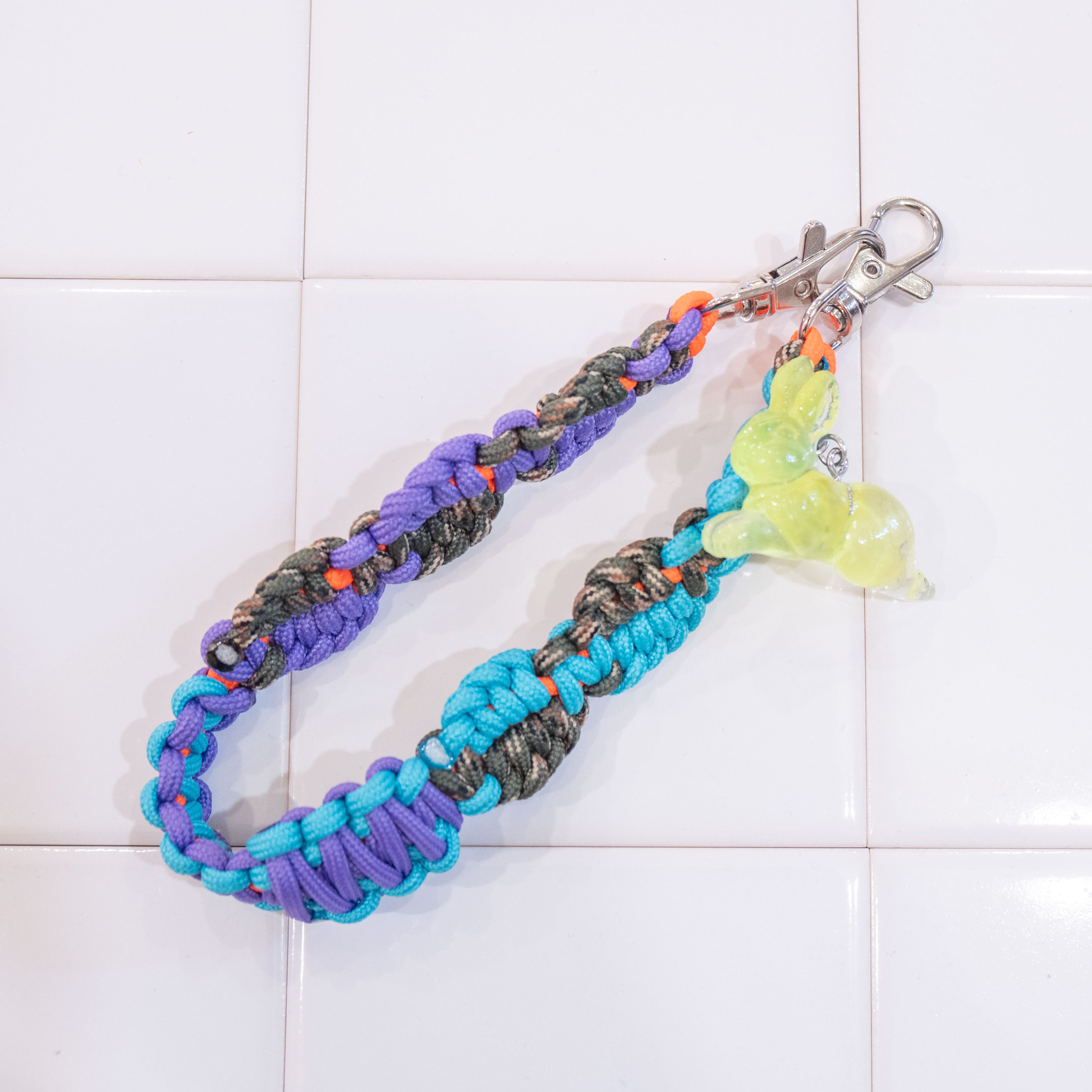 ハンドメイドのパラコードアクセサリーうさぎのチャーム付き。