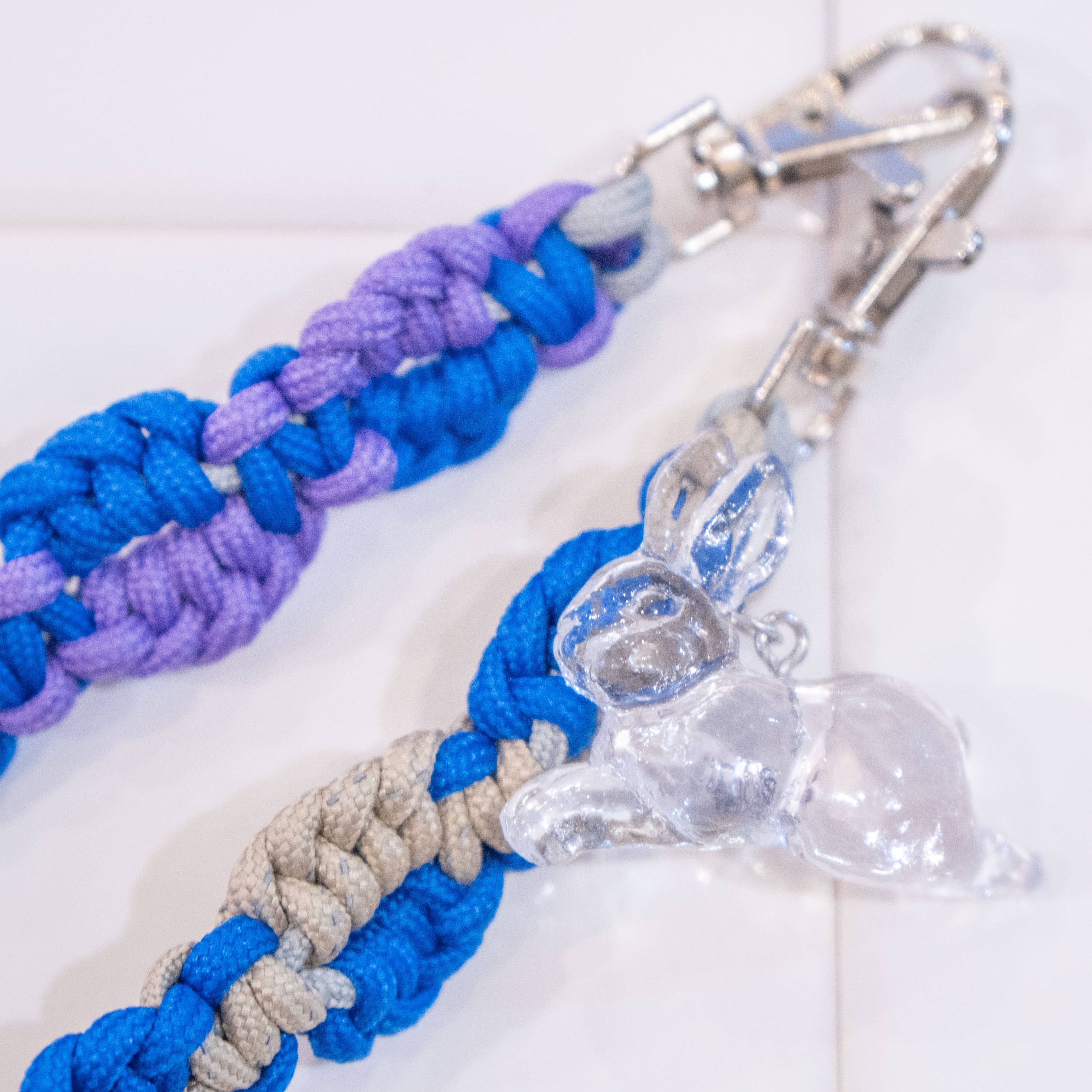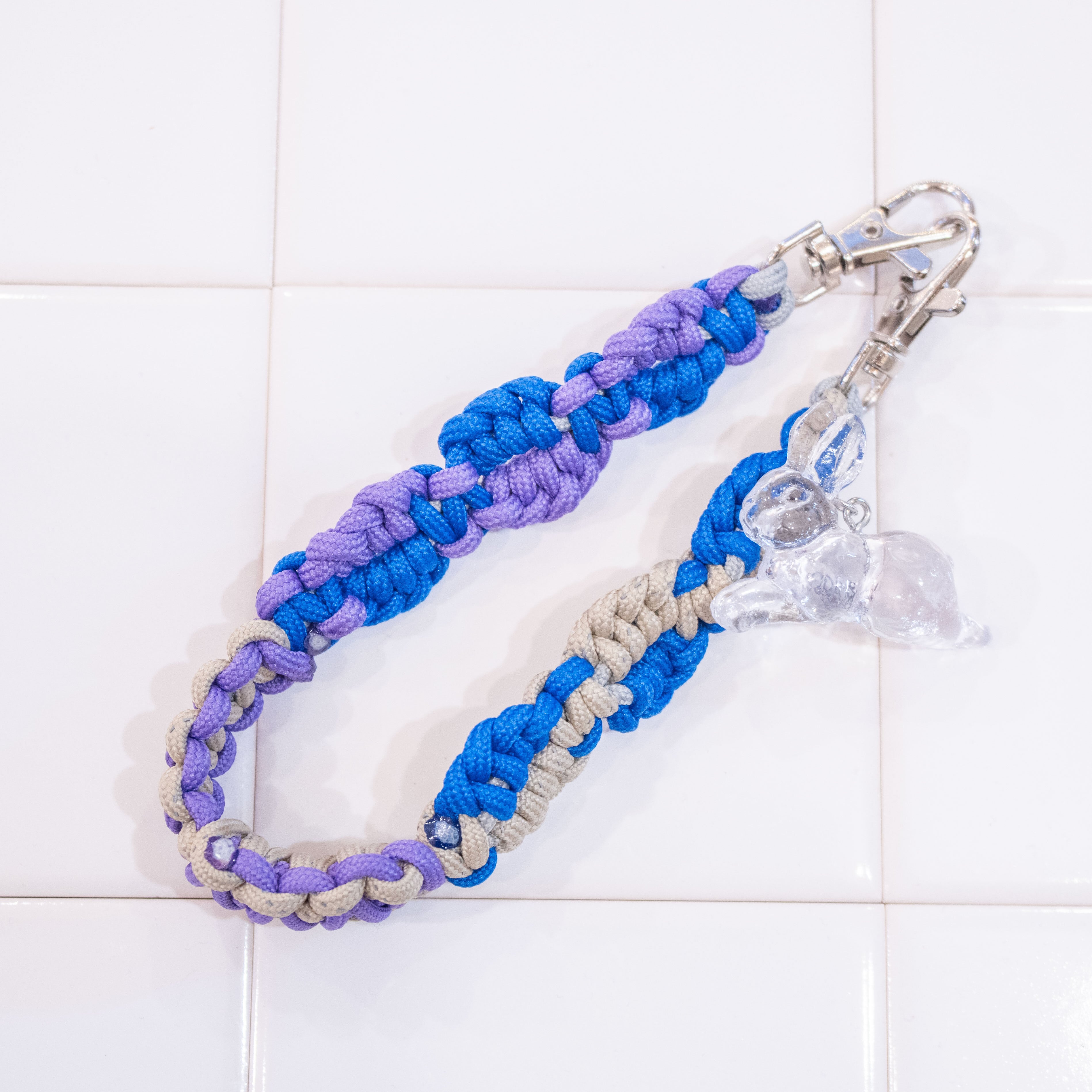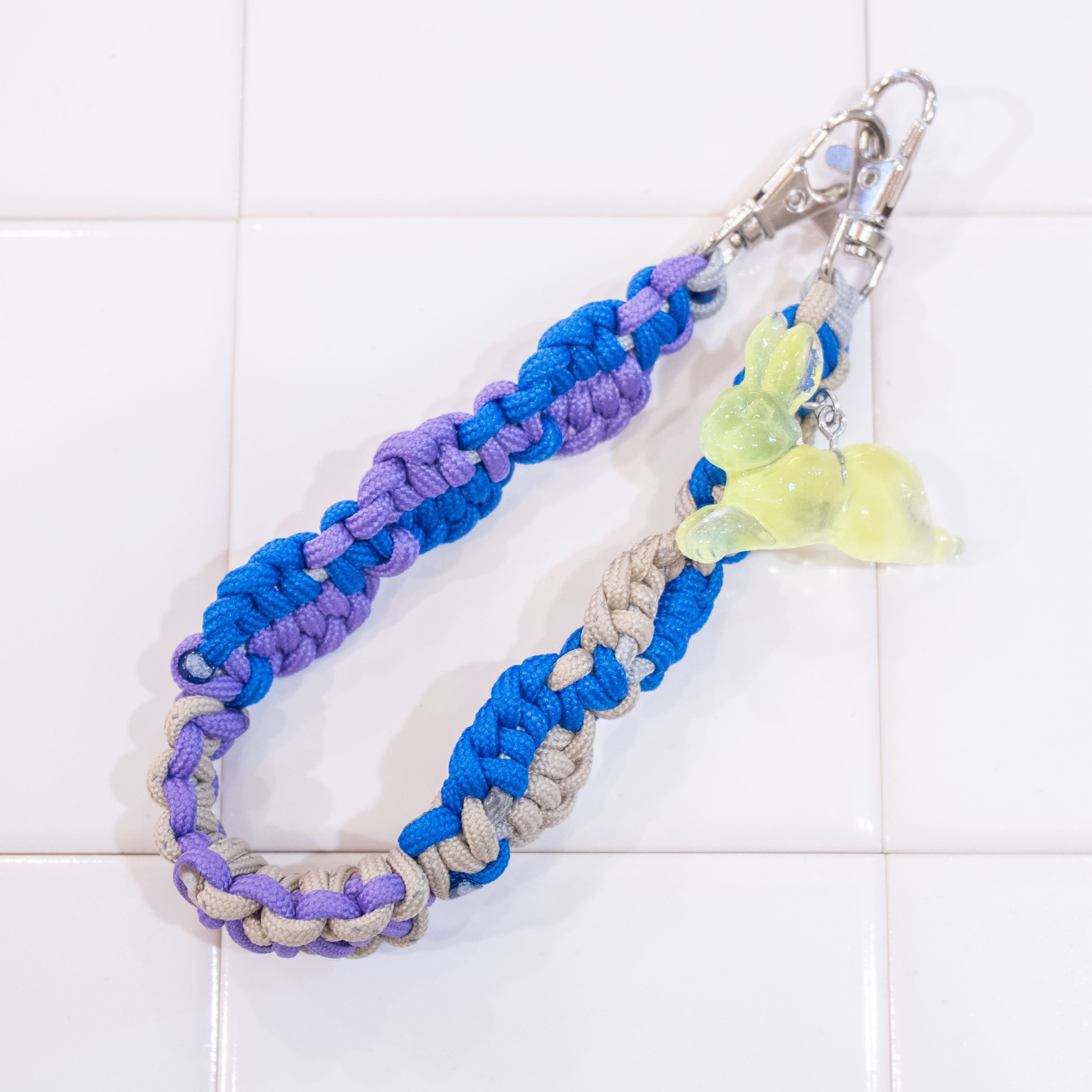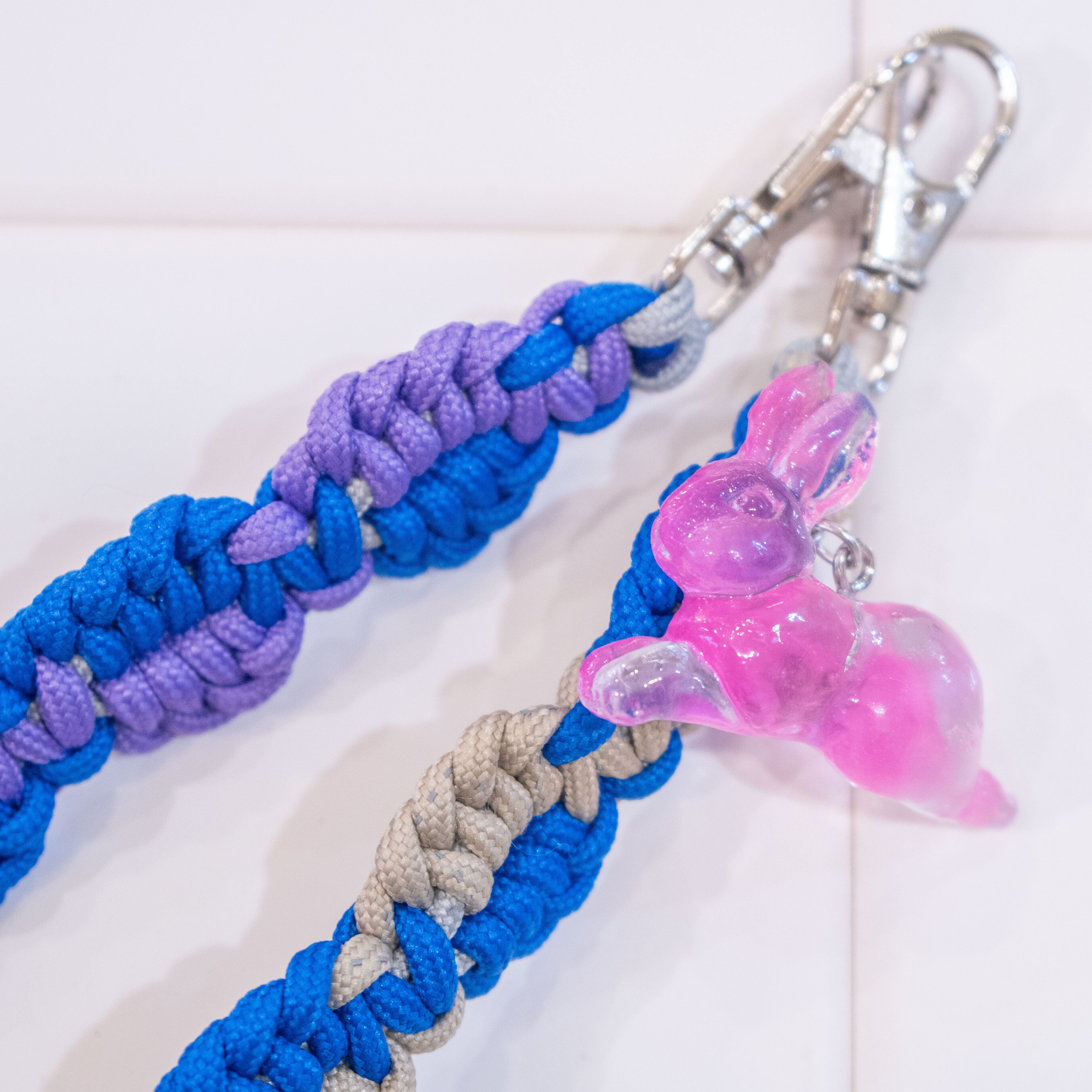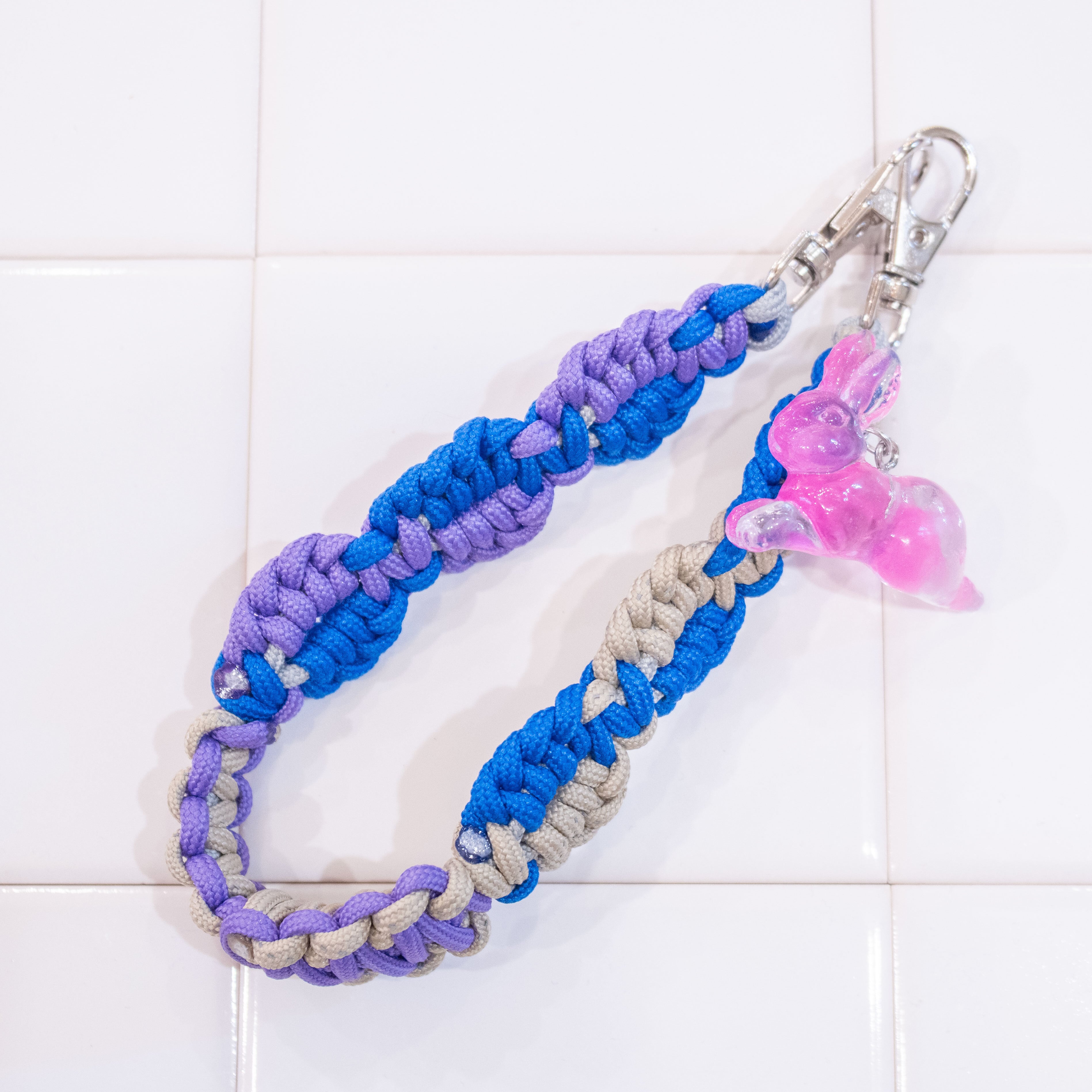 ハンドメイドのパラコードアクセサリーうさぎのチャーム付き。