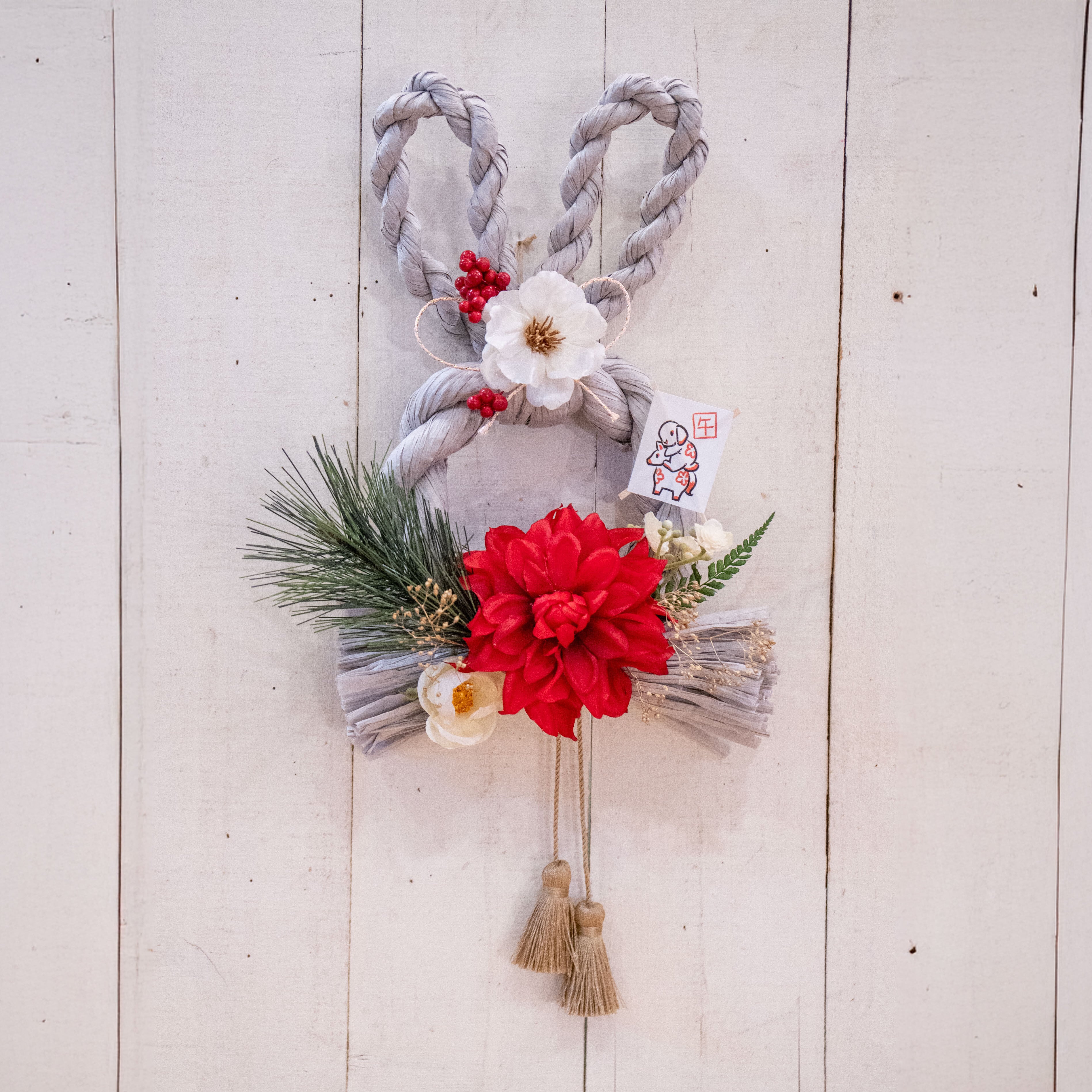 ロロットオリジナルのうさぎの形をした、しめ縄は伝統的な要素とユニークなデザインが組み合わさった作品です。新たな始まりを象徴し、ご家庭に幸運をもたらすことを願って制作しています。