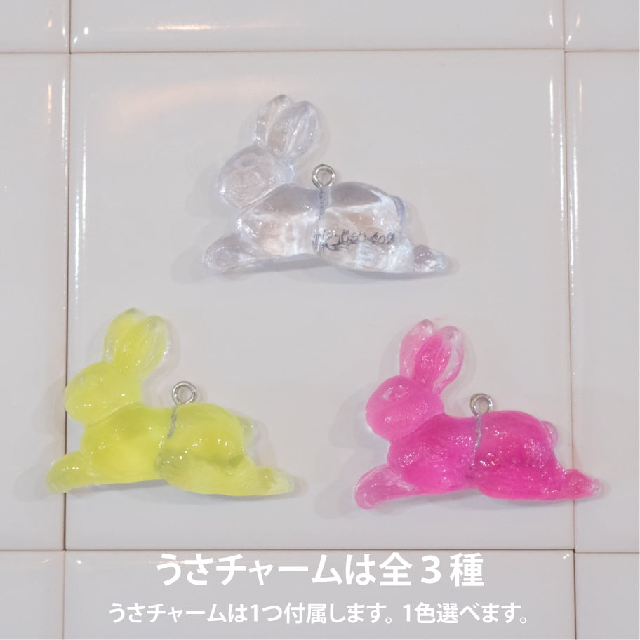 ・レジン製のうさぎのチャーム(うさチャーム)は金属で固定していますが、強い衝撃や無理な力が加わると外れる場合がありますのでご注意ください。
