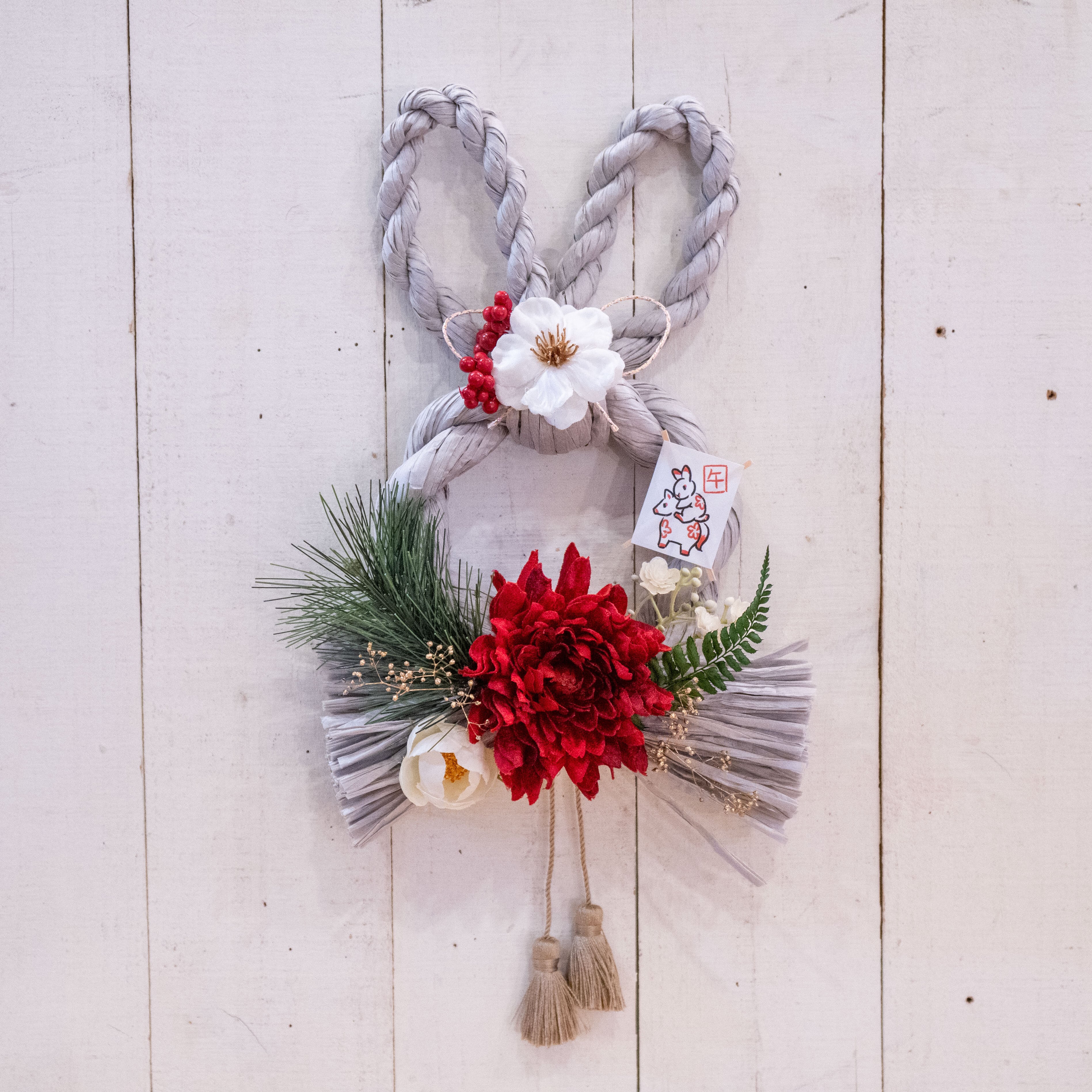 ロロットオリジナルのうさぎの形をした、しめ縄は伝統的な要素とユニークなデザインが組み合わさった作品です。新たな始まりを象徴し、ご家庭に幸運をもたらすことを願って制作しています。